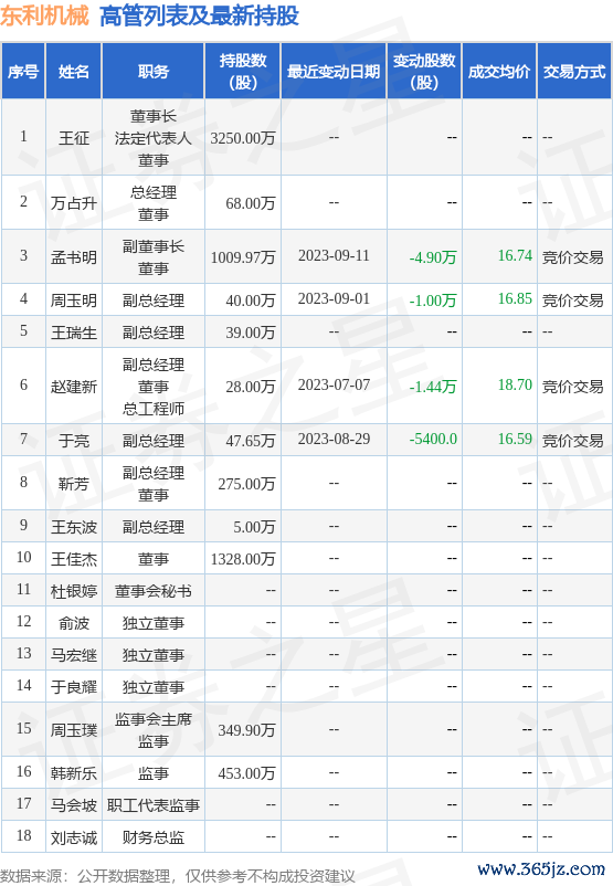 杨方配资官方网站 东利机械: 9月11日公司高管孟书明减持公司股份合计4.9万股