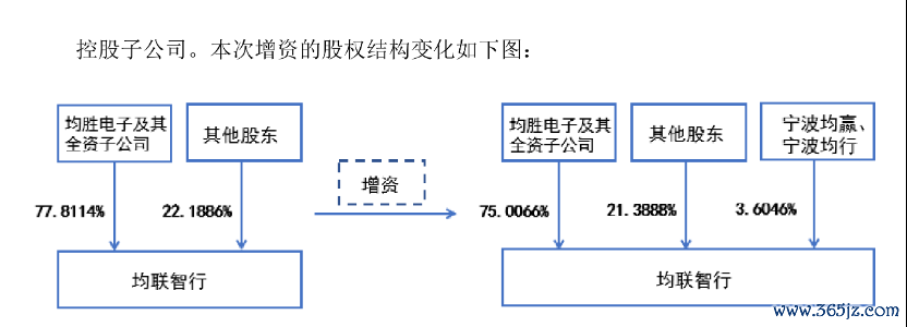 均嬴和均行成立不久,2020年12月24日,均胜电子公告称,均嬴和均行拟分别出资约人民币3075万元和人民币1176万元,合计出资约人民币4251万元对均联智行增资。