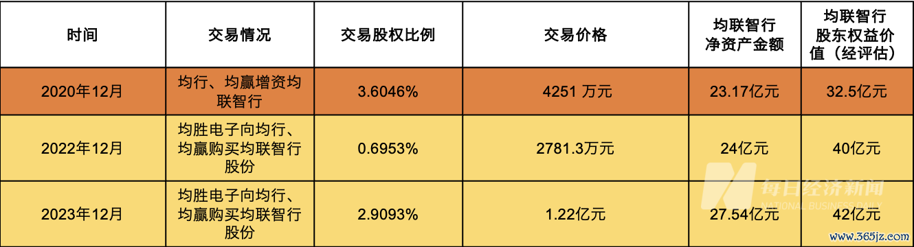 值得注意的是,去年12月,均胜电子就曾收购过均嬴和均行所持的均联智行股份。当时均胜电子以现金约2781.3万元收购了均嬴及均行持有的均联智行约471万股股份,占均联智行总股本比例为0.6953%。