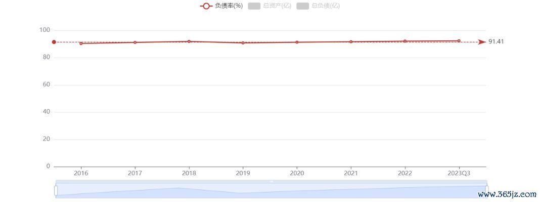 2017年至2022年,苏农银行的负债率总体在92%左右波动,2023年第三季度为92.27%。